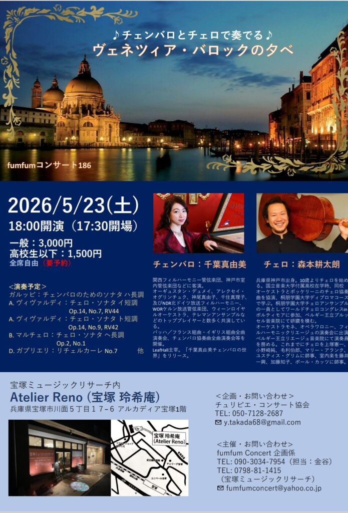 | 演奏 | 森本耕太朗(チェロ)、新居靖子(ピアノ) |